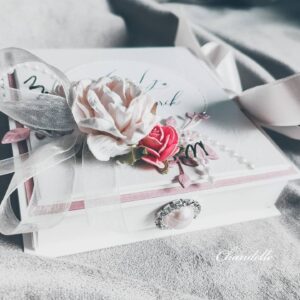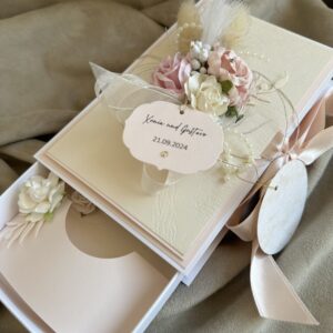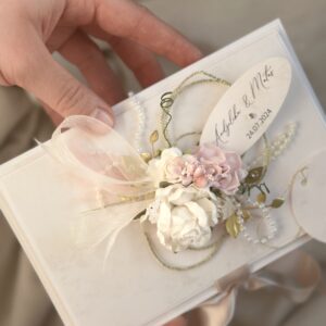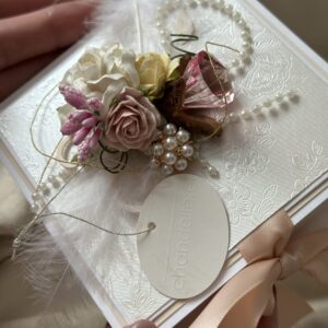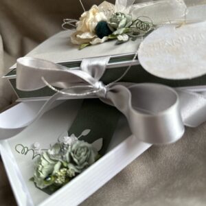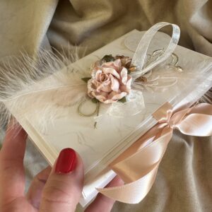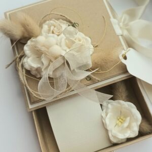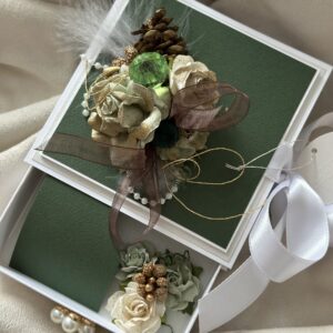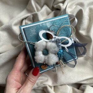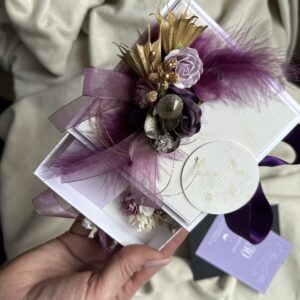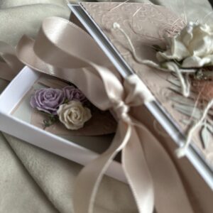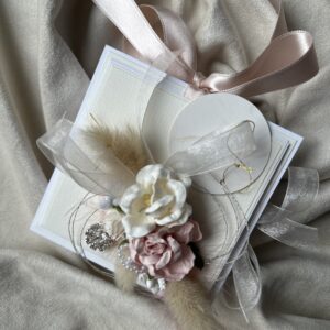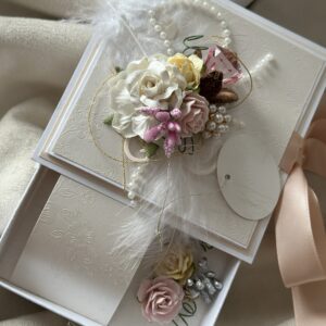 Стильный и утончённый дизайн гармонично сочетает в себе эстетическую ценность открытки и удобство коробочки для подарка.