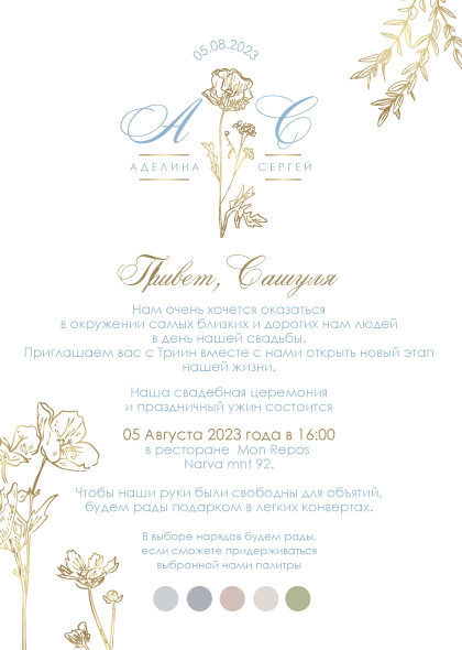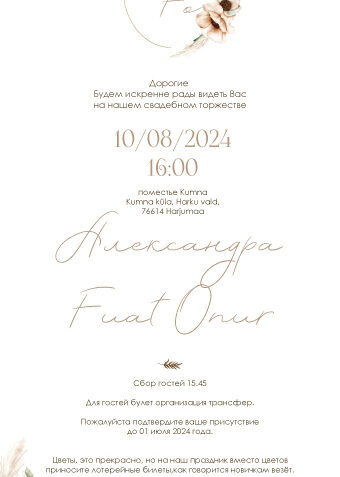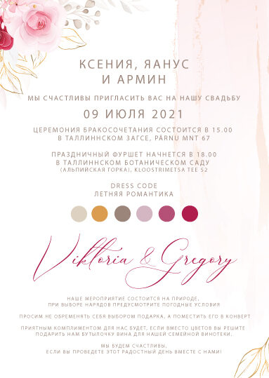 Вы можете заказать эксклюзивный дизайн и я персонально для вас создам пригласительное под тематику вашей свадьбы.